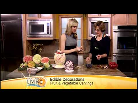 Fruit Carving San Diego }}- http://VegetableFruitCarving.com/4th-of-july-ideas/ Nita Gill shows fruit carving edible decoration ideas for the 4th of July on San Diego Living morning TV show ...