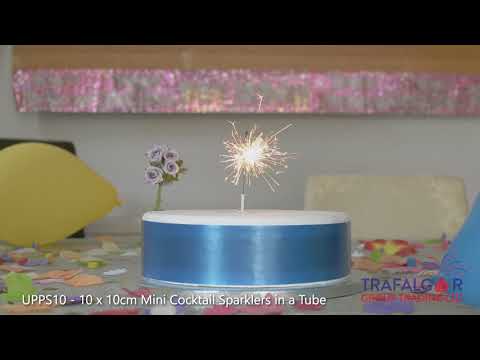 Trafalgar - Mini Cocktail Sparklers - Mini Sparklers For Cocktails - Item UPPS10 - Tube of 10 x 10cm sparklers ideal for cakes and cocktails. These sparklers come with a food grade plastic support holder.